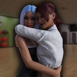 Enjoy an erotic visual novel featuring two hot women and an engaging sex simulator. Juliette and Natalie go for their daily workout at the gym. The quiet and empty gym is too inviting and they give into the their temptations and have sex in front of the massive mirror on the wall.