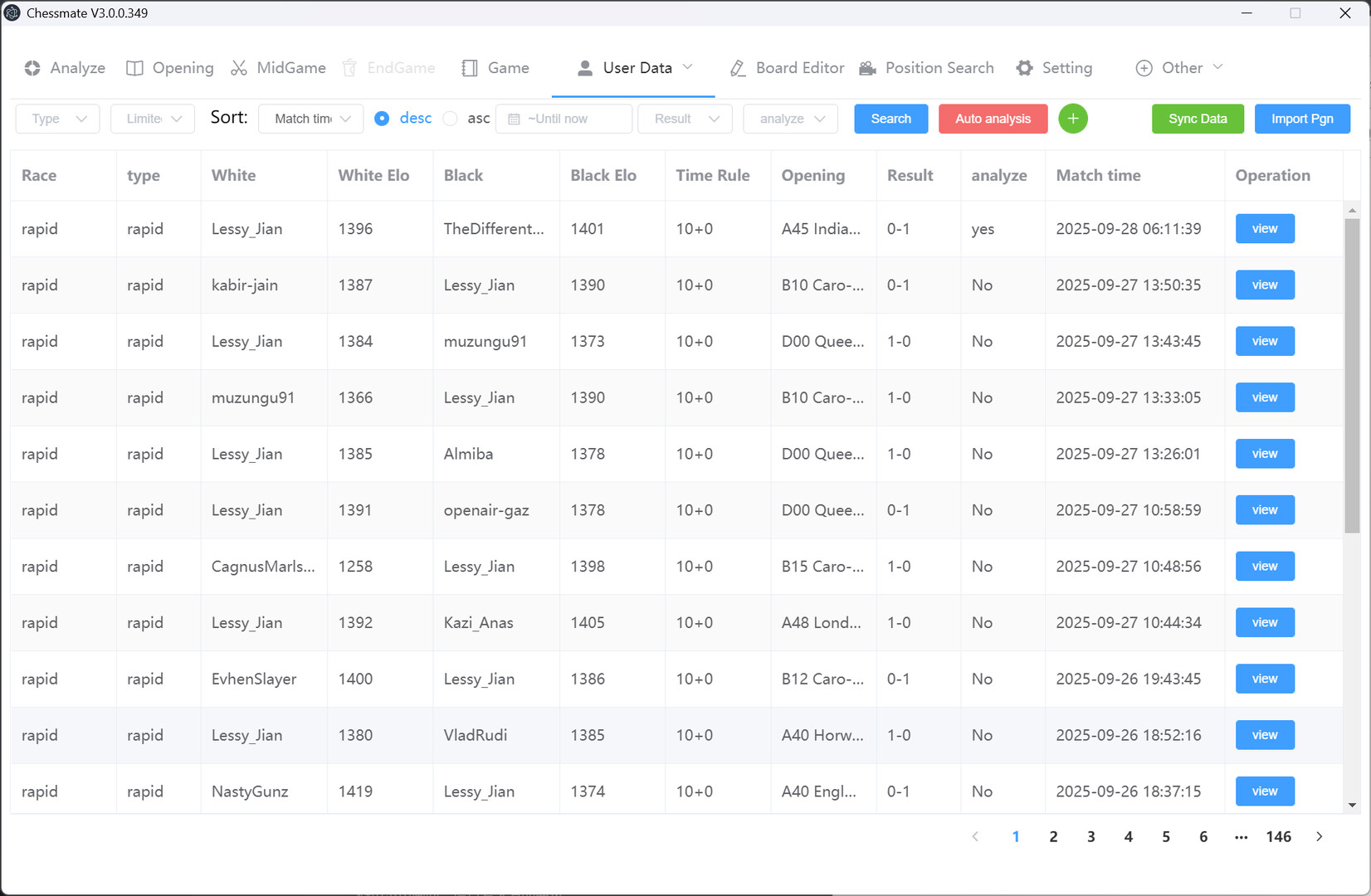And the user data module also has a built-in data analysis function, which can view the user's recent matches and favorite openings.