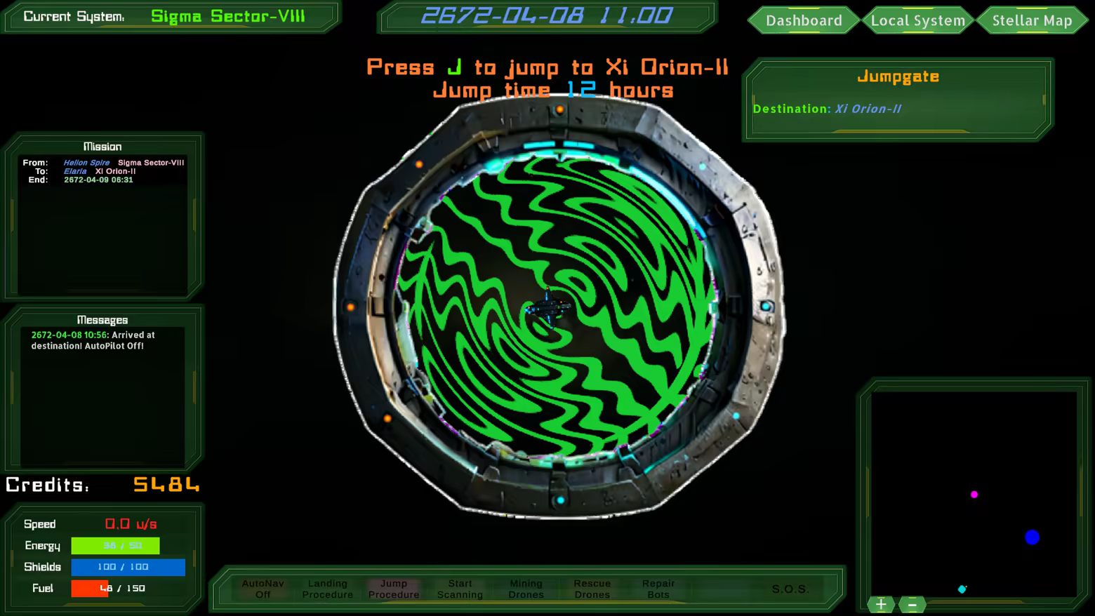 Viaja entre sistemas conectados por Jumpgates, descubre nuevas rutas, encuentra derelictos, estaciones remotas y eventos inesperados.