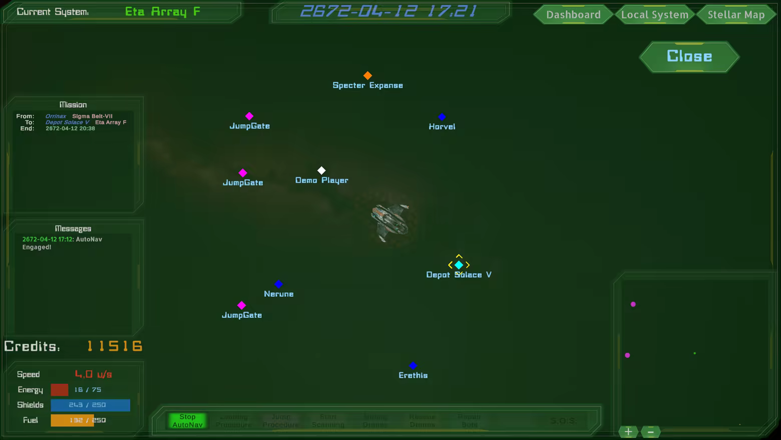 Travel through interconnected systems, discover new routes, find anomalies, stumble upon derelicts and remote stations. Procedural generation keeps each run fresh.