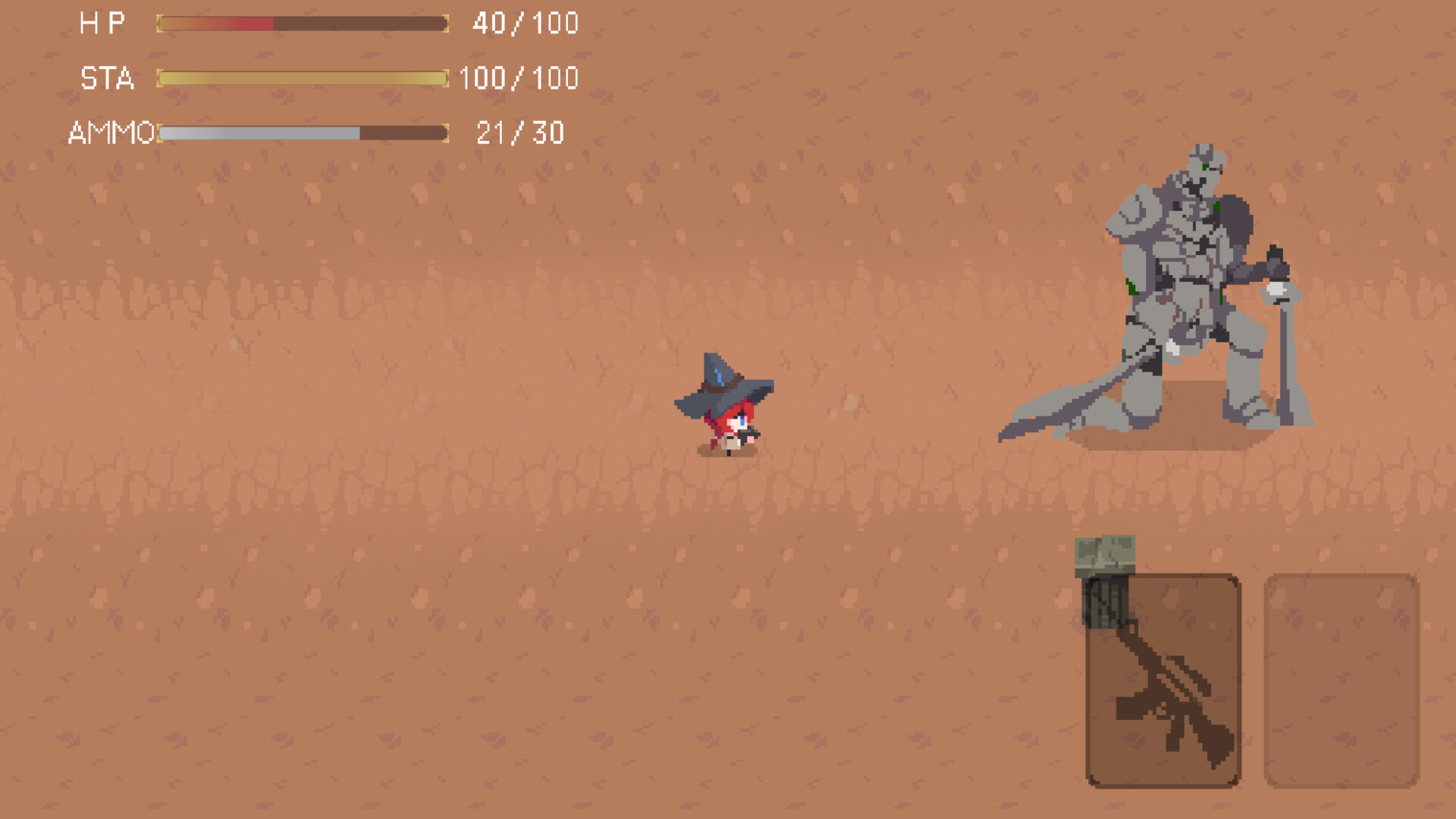 The demo only covers the first minor chapter. It ends after you either defeat the 3 boss or are defeated by it. The full version will include over 6 larger maps, more than 5 weapons, a level-up system, a collection system, and a main story lasting over 3 hours.
