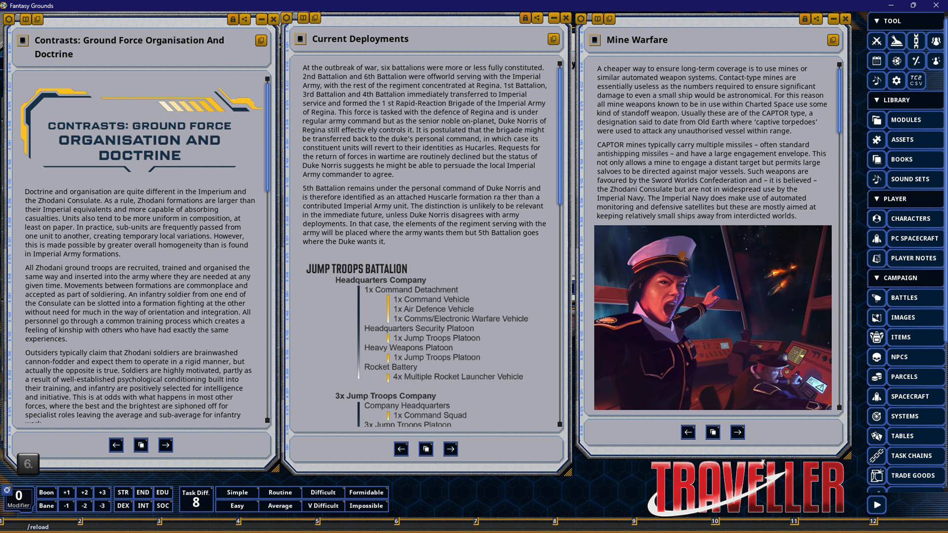 Requires: The free Fantasy Grounds virtual tabletop (VTT) software and a one time purchase of the Traveller 2E (Mongoose) ruleset.