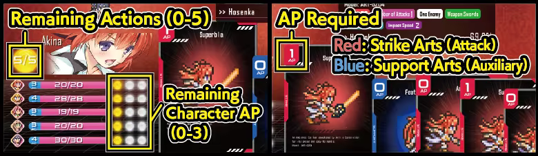 The party requires Actions to use Arts each turn! (5 Actions are given per turn)