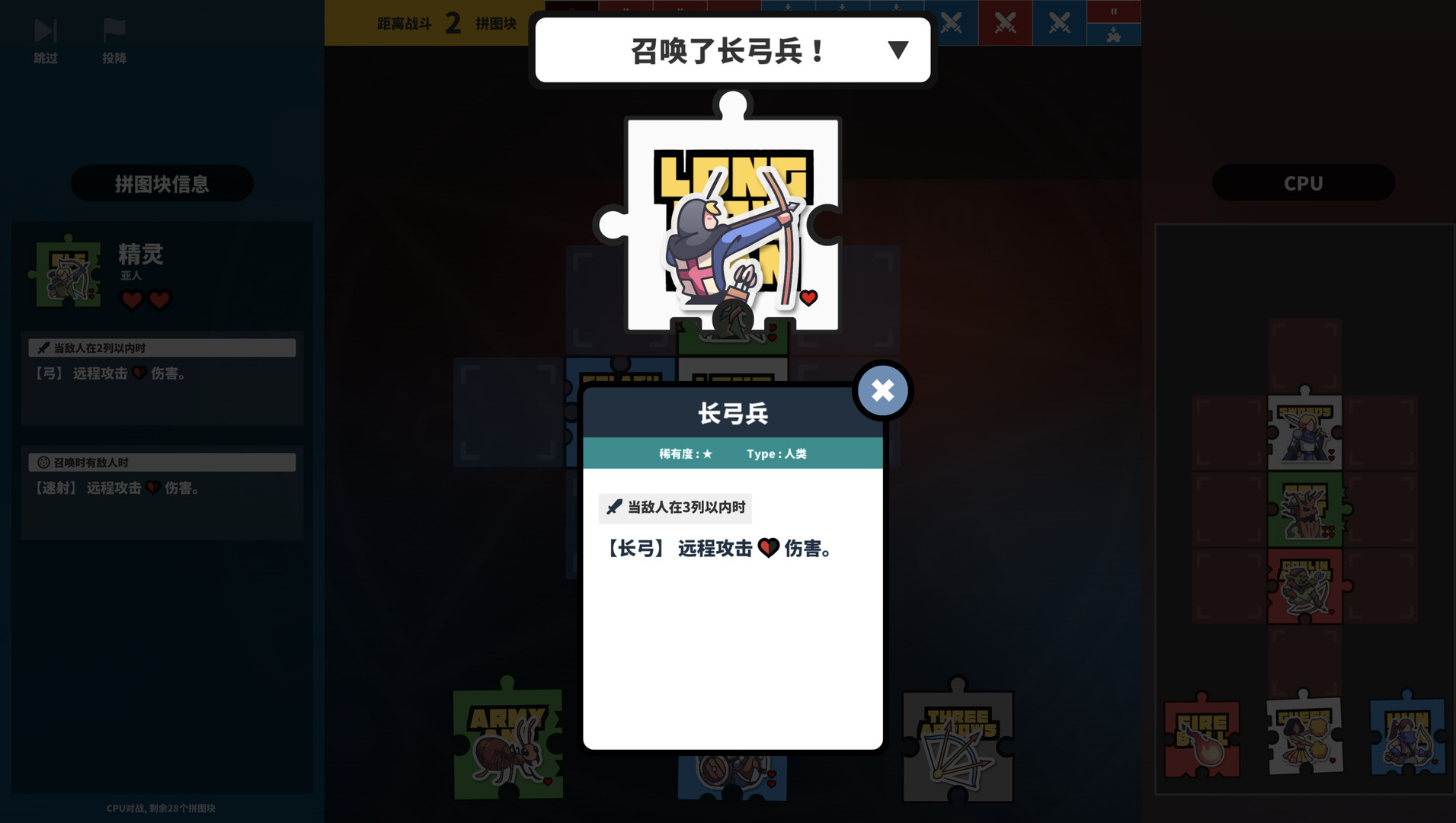 拼图、卡组构筑与自动战斗的融合体验。 连接所有凸起,召唤被封印在拼图块中的单位与法术!