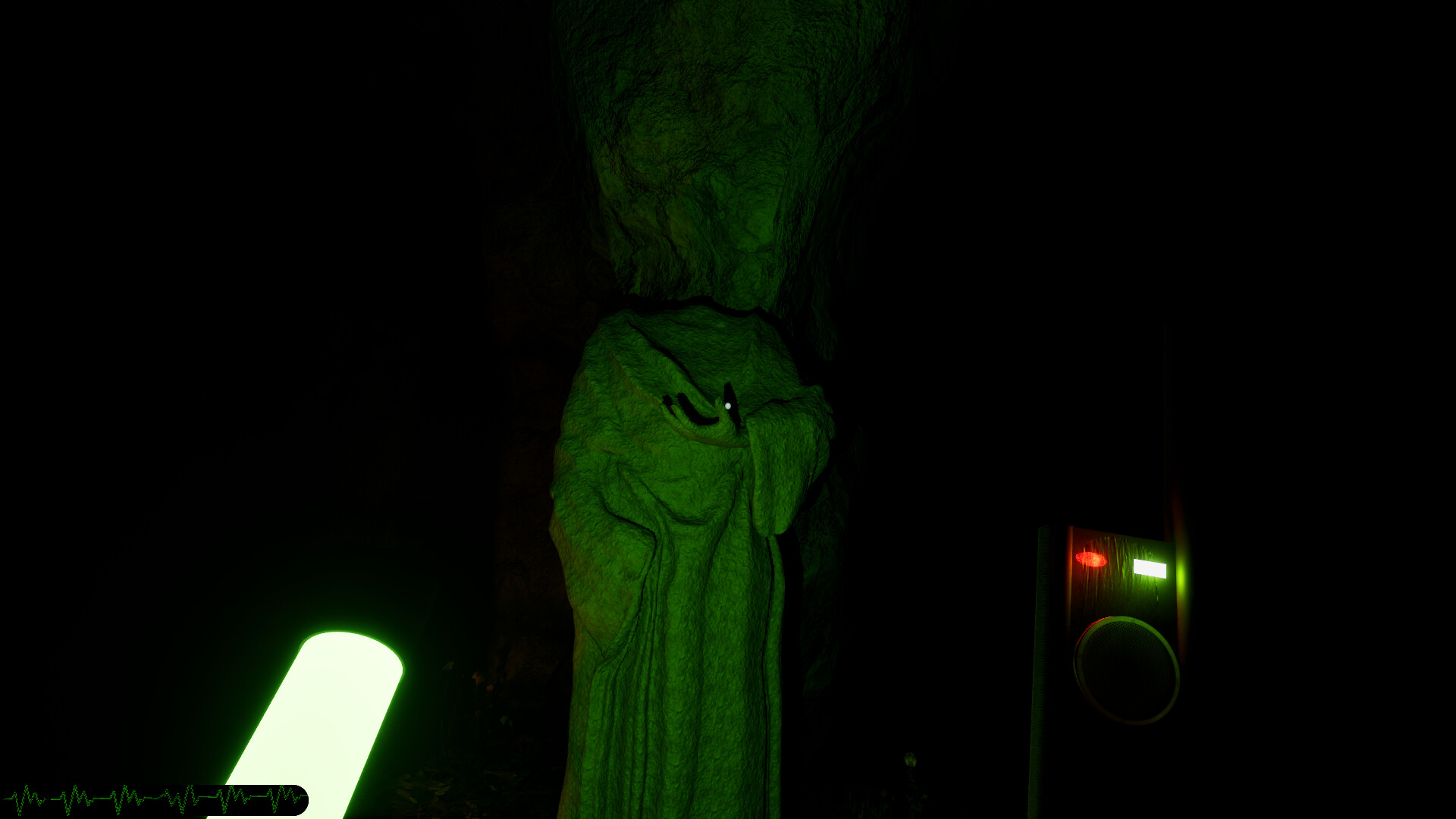 Guided exploration – a glowing green stick helps you navigate the darkness.