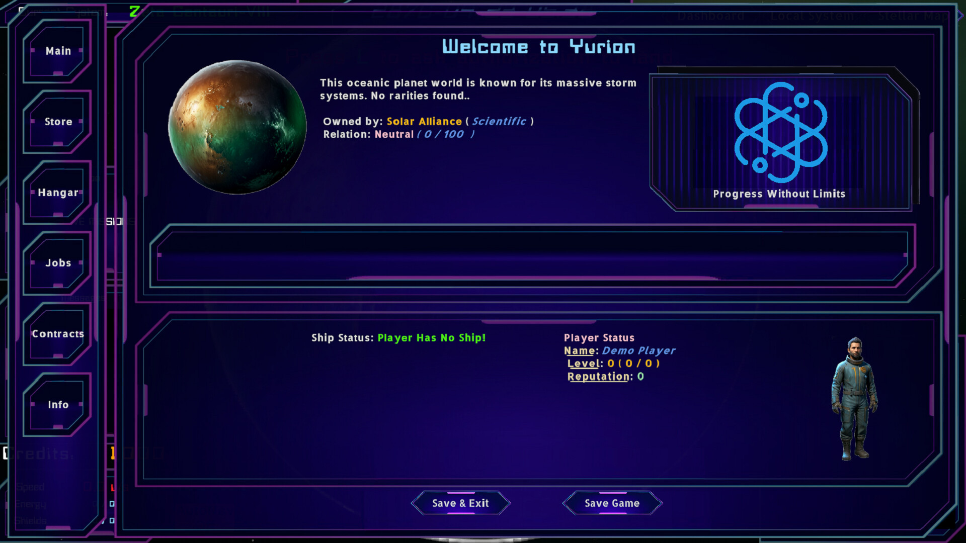 The demo version includes the core gameplay systems: trading, transport and assist contracts, mining, faction reputation, and ship management. Planned future expansions include: