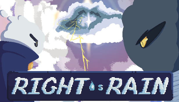 Right as Rain is a weather themed head-to-head bullet-hell. Control the projectile deluge by means of a boss character, or be the one to dodge the oncoming raindrops, collect pun-ishing powerups and fight for the Right to Reign.