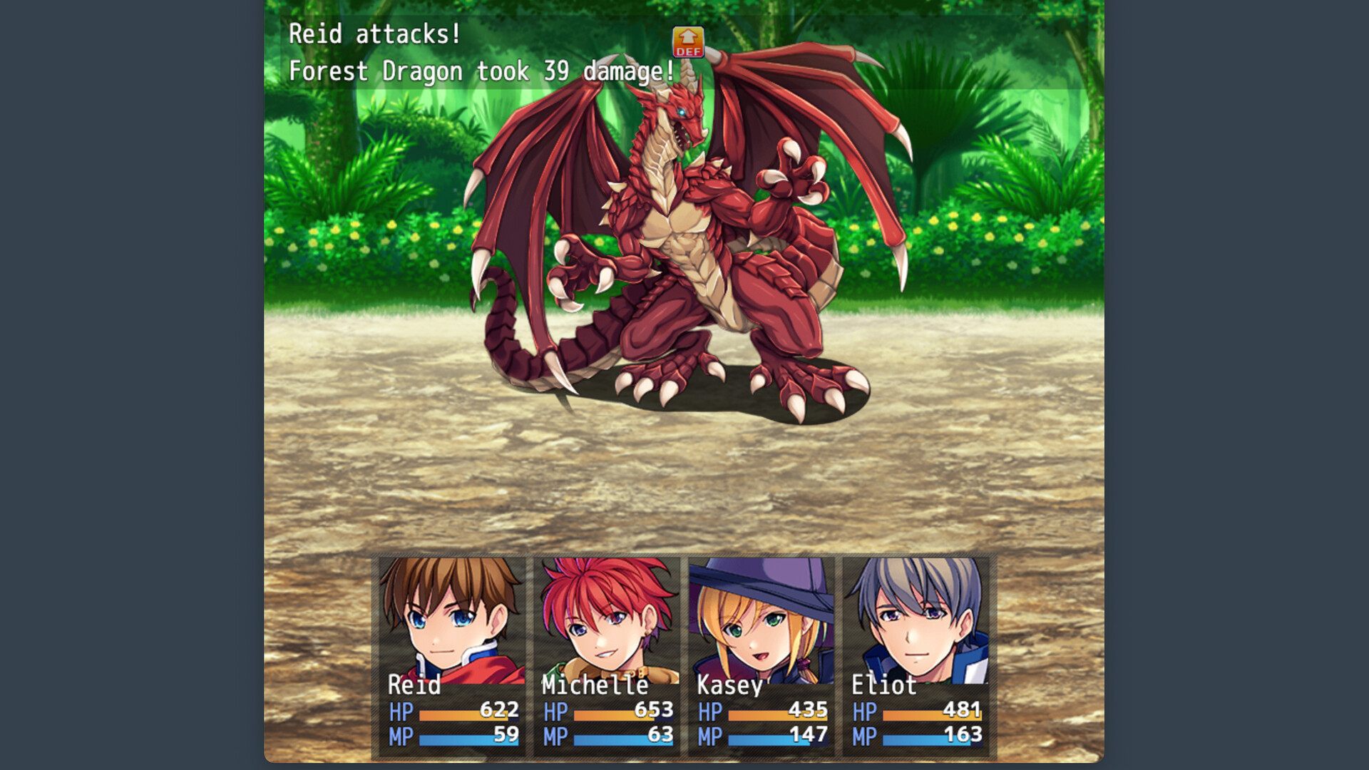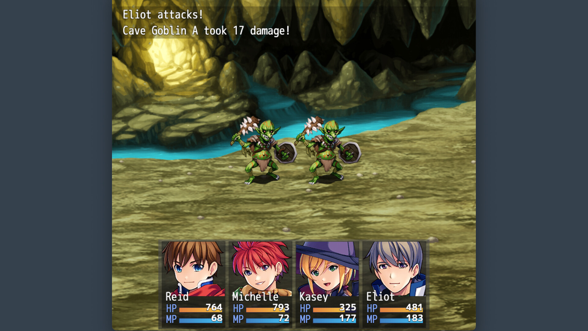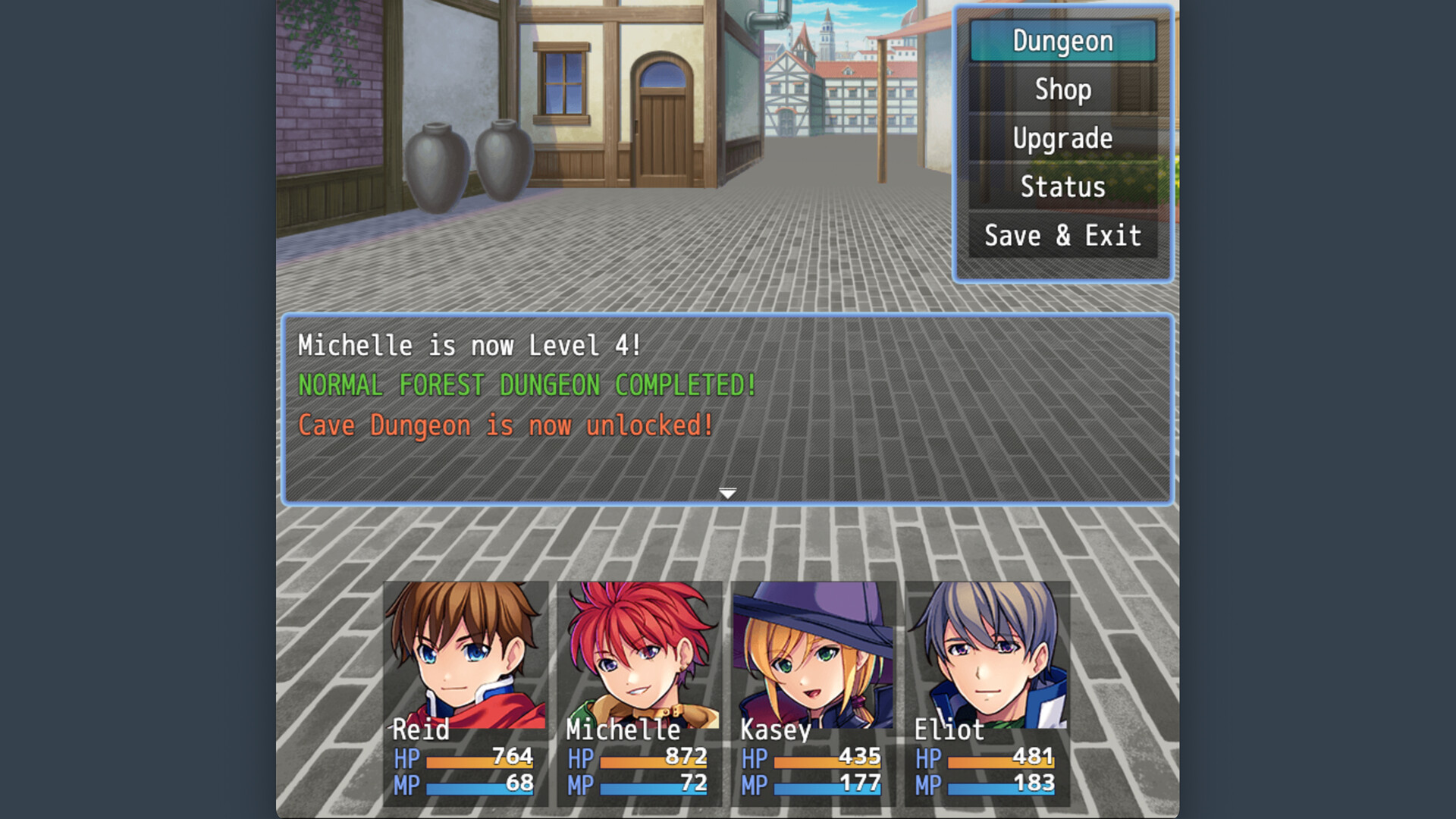 • Classic RPG mechanics with HP, MP, and combat abilities
