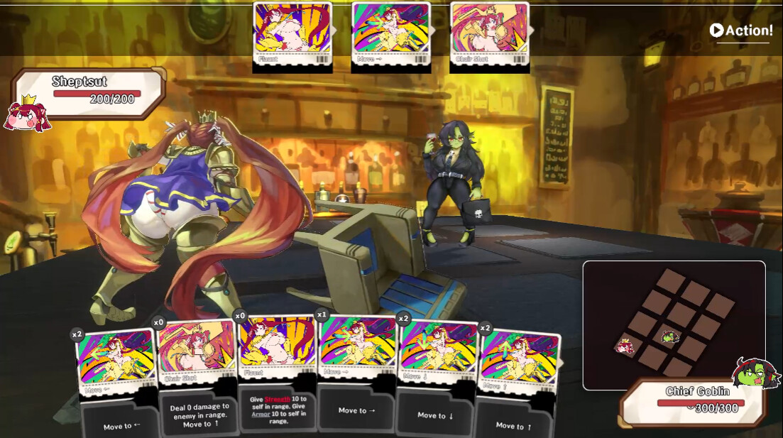 Izakaya Izakoza” is a deckbuilding roguelike that combines card battles with grid-based strategy.