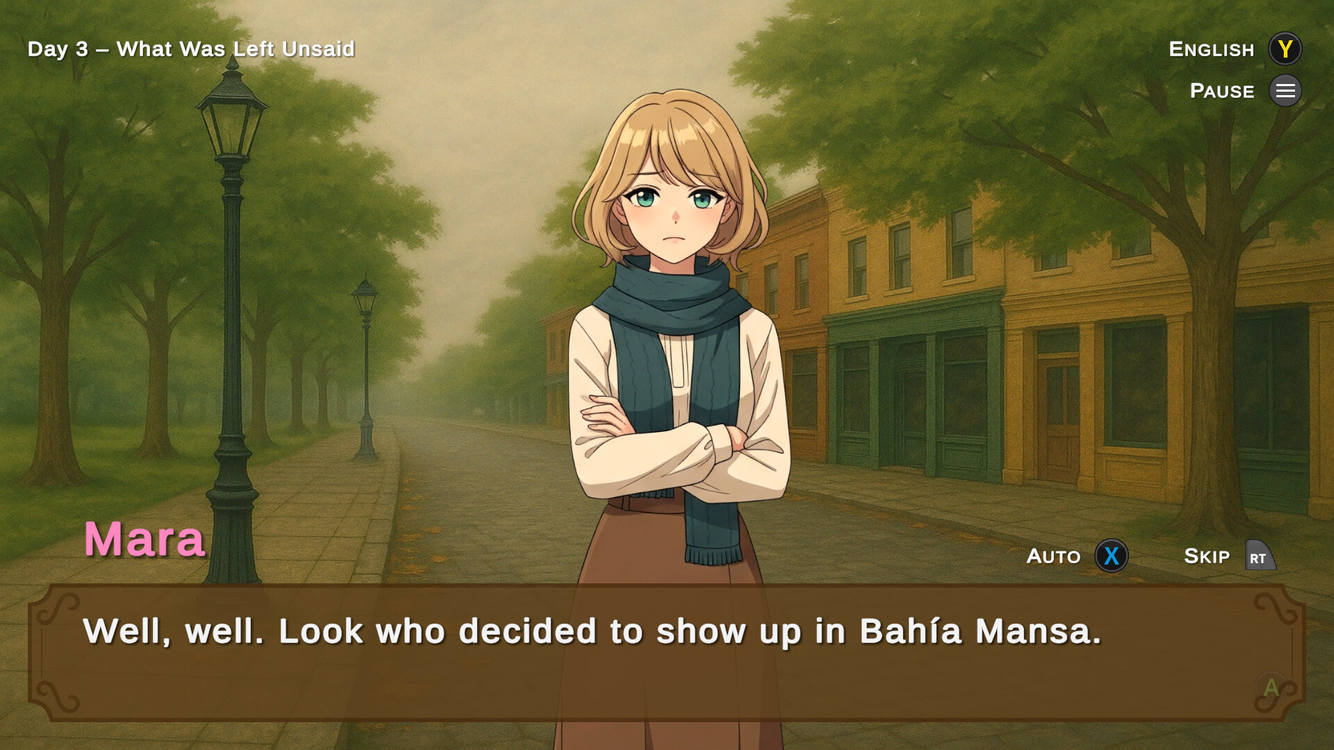 As Elias returns to the coastal town that once sheltered him, he’s pulled into a slow winter of connection, memory and quiet decisions. Take the role of this young man and guide the choices he makes, surrounded by the warmth of townspeople young and old, often holding conversations in a bookstore over shared coffee.