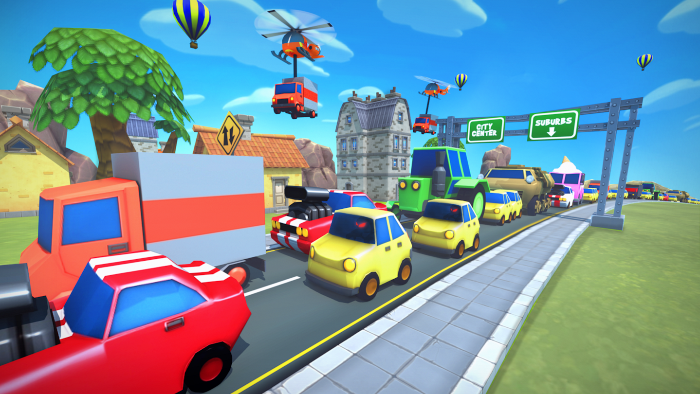 Evil Robot Traffic Jam brings the tower defense genre into VR from the ground up. The environment comes to life: vehicles explode like popcorn around you, ambient objects and effects delight in every direction, and you feel in complete control and comfort as you strive to rid the world of bad traffic!