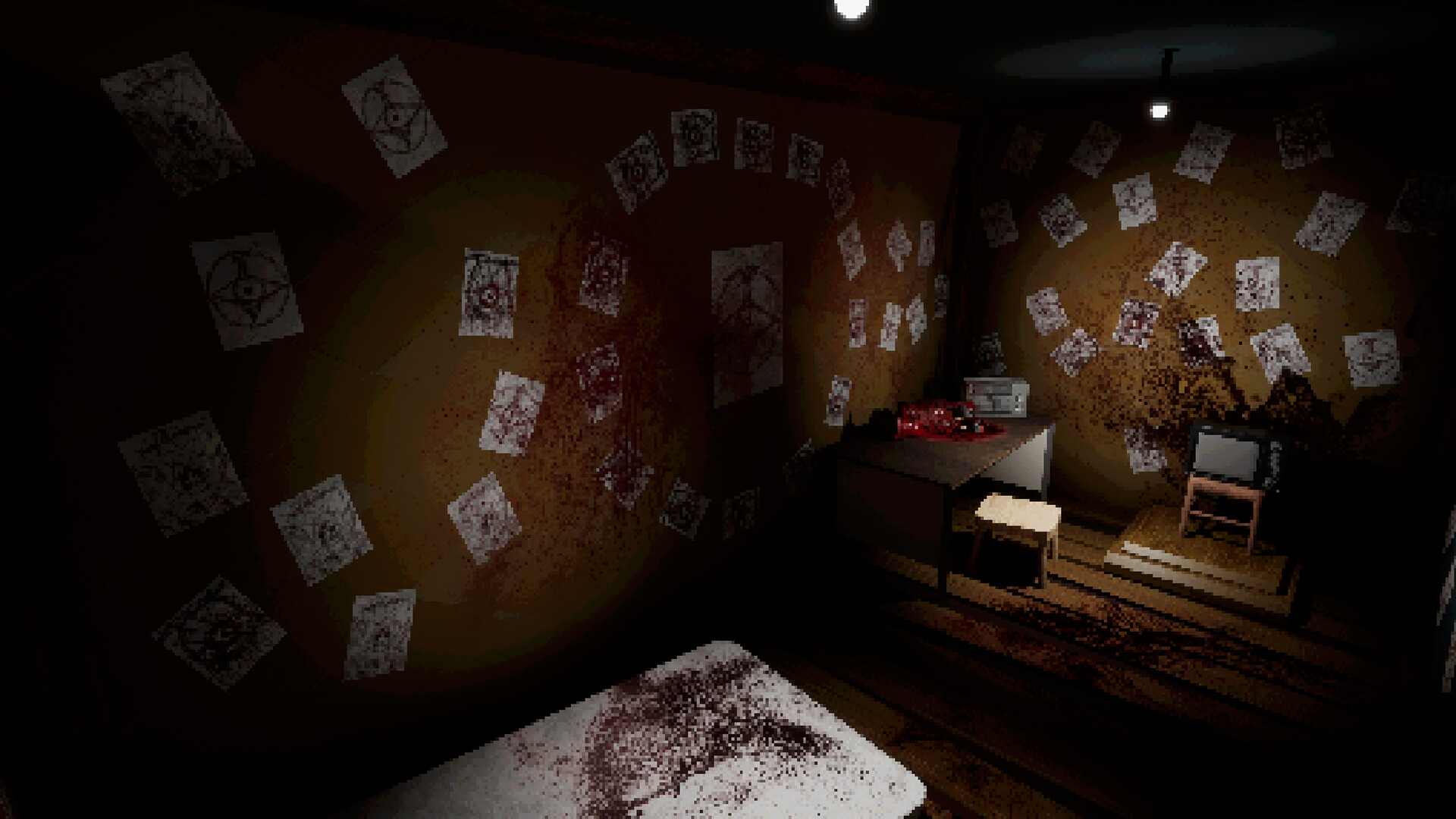 • Retro Aesthetic: The game uses low poly models and has a pixelated effect to further enhance the retro feeling while immersing the player in the world and increasing the fear factor.