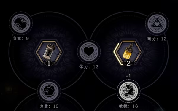 As these 8 core attributes improve, they enhance the 4 special ability nodes at the wheel's center. These grant your character practical bonuses such as increased healing potion capacity and greater HP restoration per use.