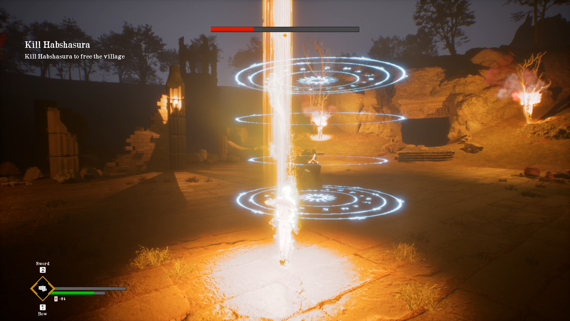 You play as Aditya, who belongs to a remote village in the Himalayas where his family has roots in the ancient Indian culture and mythology. In this Demo, Aditya is nearing a village where he is attacked by something sinister. He investigates and stumbles upon a villager. Can he help this village in time? This is the main quest in this Demo.