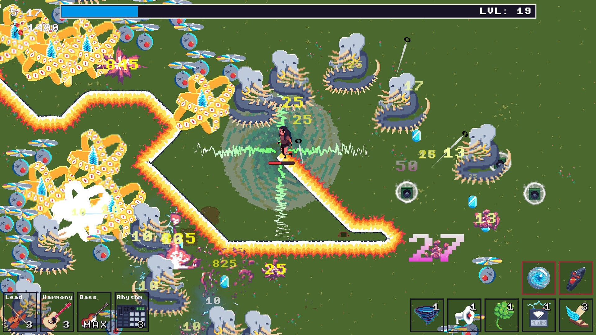 Build your band, unlock powerful relics, and slay hordes in sync with the beat. Big Band Survivors is a rhythm-based roguelite that combines the visceral gameplay of the Survivors-like genre with musically interwoven game mechanics.