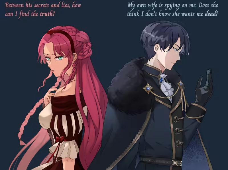 In this otome isekai visual novel you're thrown into an arranged marriage with the cold Duke of the North. Explore political tension, shifting loyalties, and two routes: romance or rebellion. Support your husband or betray him like a true villainess and take control of your fate.