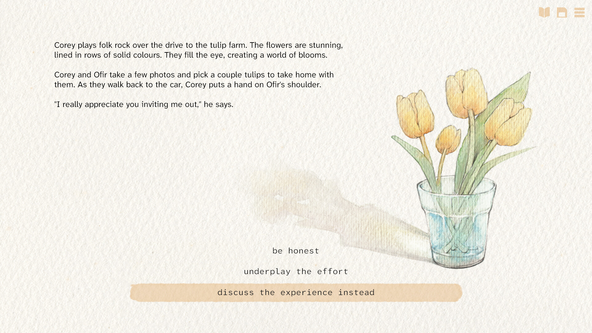 Reconnect and learn about your neglected friends as you develop your monster. Wade through complex emotions to decide what they each mean to you.