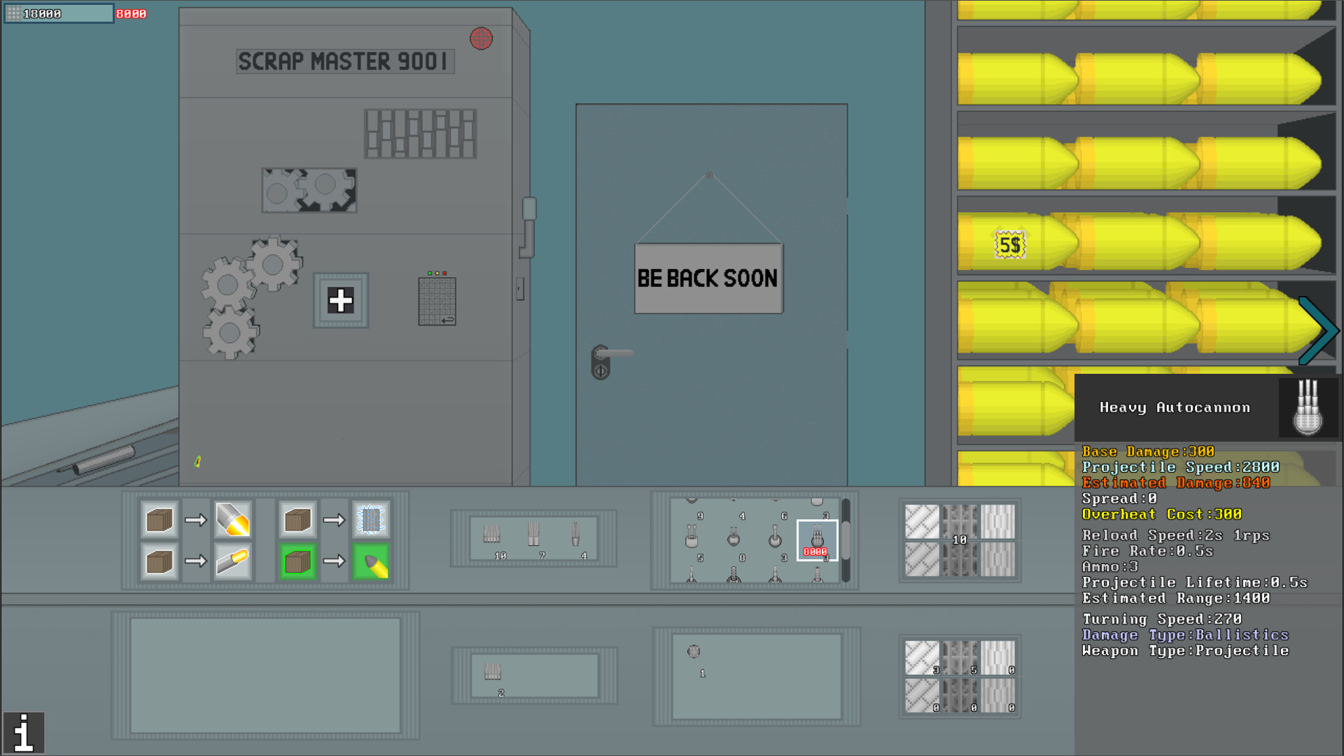 Arguably the most important addition I plan to add is ship blueprints. This would not only allow the player to save time when building a ship, but it could also be used for possible features like creating custom enemy and ally units, along with ships used as fighters for carrier-style summoner "weapons". It would also do wonders for any future custom levels that could be created as part of another update.