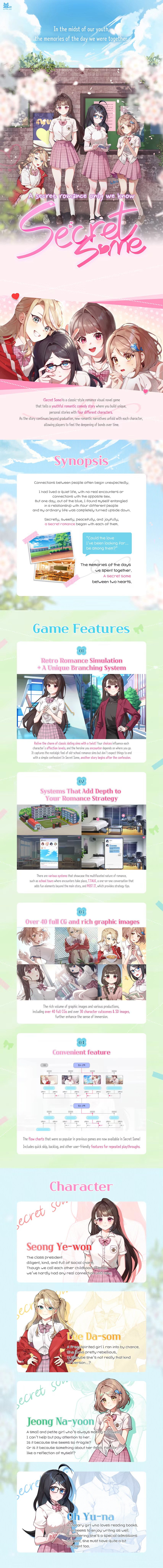 "Secret Some" is an authentic game It is a 'Youth Love Comedy Story' that depicts the process of creating a story of four characters and two people. Starting with graduation, there's another story about dating a character You can feel the feeling of a growing connection.