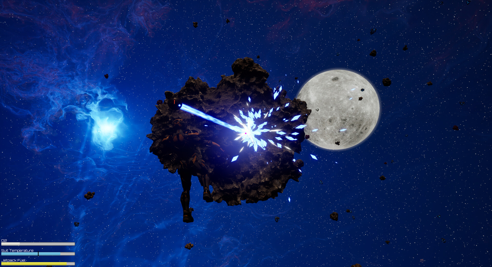 Drift alone through space in an empty ship and mine asteroids using your laser drone. Build machines, automate production chains, and upgrade your suit and jetpack as you slowly turn your drifting vessel into a self-running space industry.