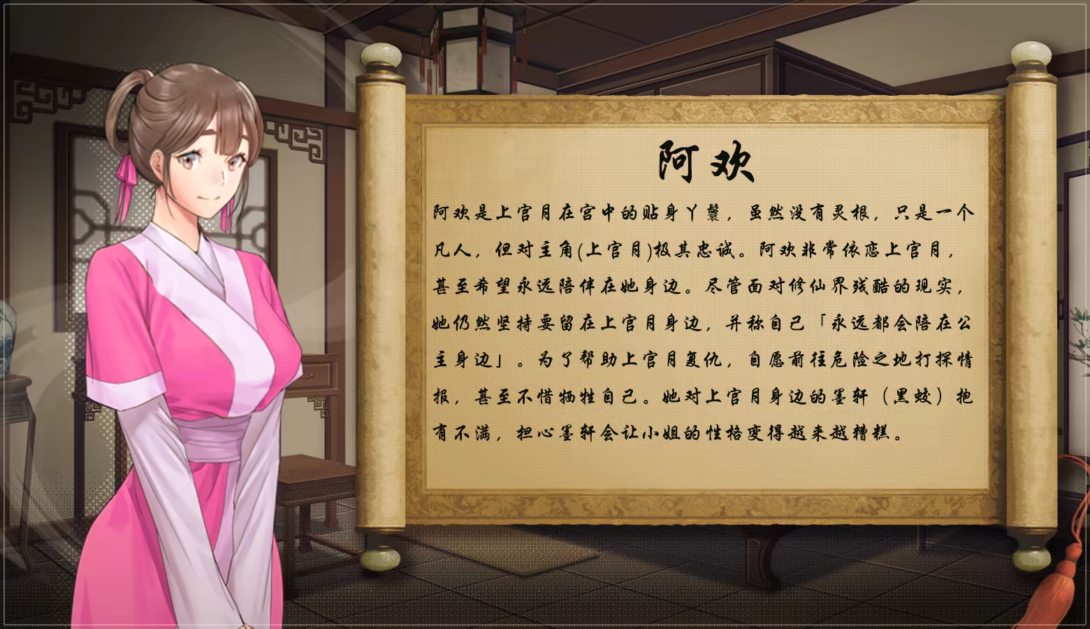 这是一款黑暗、充满宿命与情欲的修仙RPG游戏。 你曾是列强六周国的公主,在国破家亡后,踏上了复仇与修仙的漫长旅程。 在这趟旅程中,你必须面对各方势力的威胁,从乱兵流氓、邪恶魔修、到强大的宗门大能,你的身心与命运将不断遭受考验与践踏。