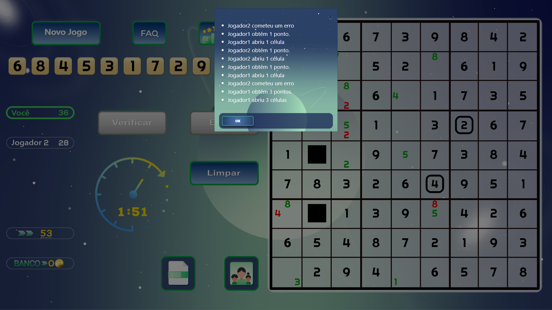 • A Lei da Harmonia: Cada linha, coluna e quadrado 3x3 é um espaço sagrado onde todos os números devem ser únicos. Se sua jogada estiver incorreta, um pequeno número vermelho aparecerá na célula — uma marca de erro que ambos os jogadores verão. Você não receberá nenhum ponto por essa jogada.