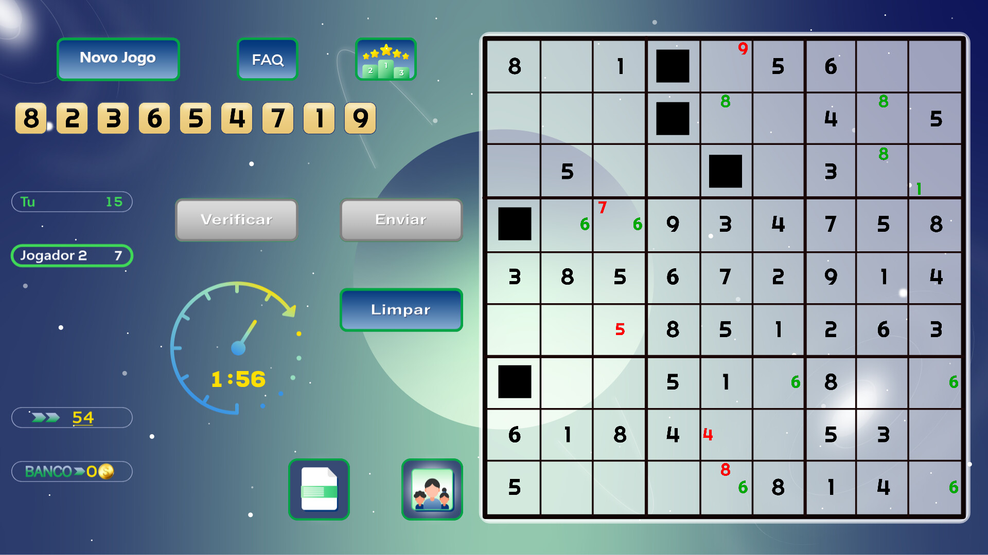 • Apostas e Vitória: Antes do jogo começar, cada um de vocês faz uma aposta igual com as suas moedas SUDOKU, formando um banco comum. O vencedor leva tudo!