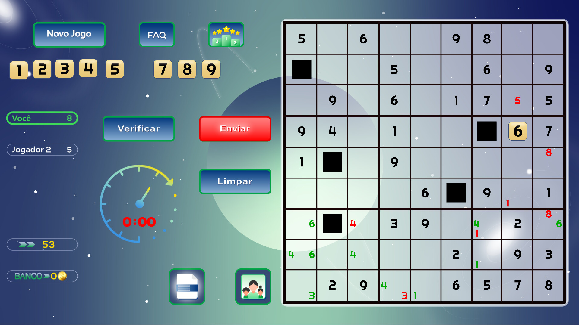 • A Lei da Harmonia: Cada linha, coluna e quadrado 3x3 é um espaço sagrado onde todos os números devem ser únicos. Se sua jogada estiver incorreta, um pequeno número vermelho aparecerá na célula — uma marca de erro que ambos os jogadores verão. Você não receberá nenhum ponto por essa jogada.
