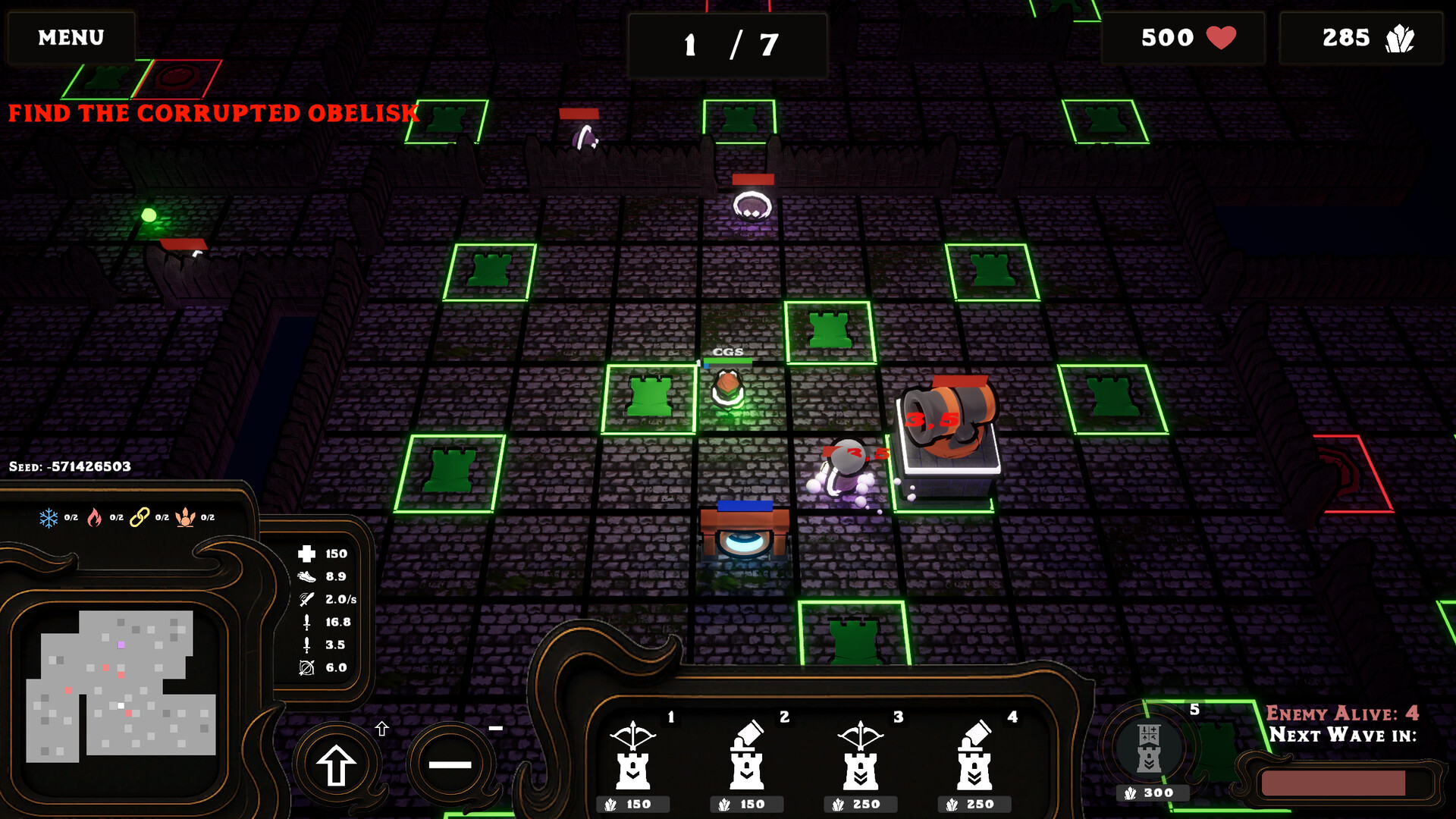 • Two modes (Dungeon and Wide), six waves + boss (Wave 7), optional Endless afterward