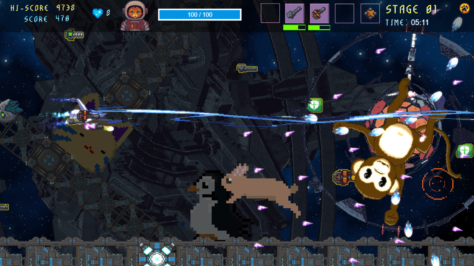 A fast-paced sci-fi cute-em-up filled with colourful bullet-hell chaos and giant adorable animals in huge mechs. Play as Astro a space cat, as you blast, dodge, upgrade, trigger Catnip Mode, and take down screen-filling cute critters overload in retro arcade style.