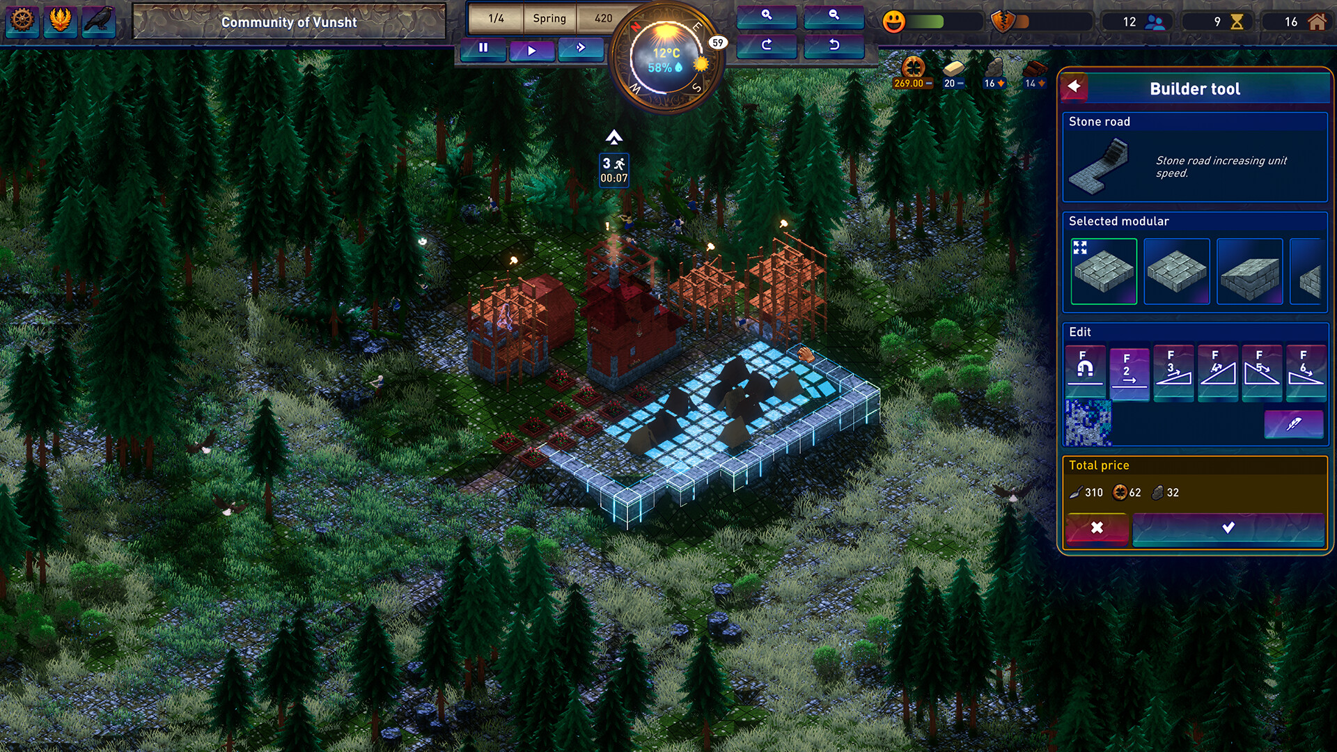 • Try out early city-building tools: resource gathering, zoning, construction, and citizen management.