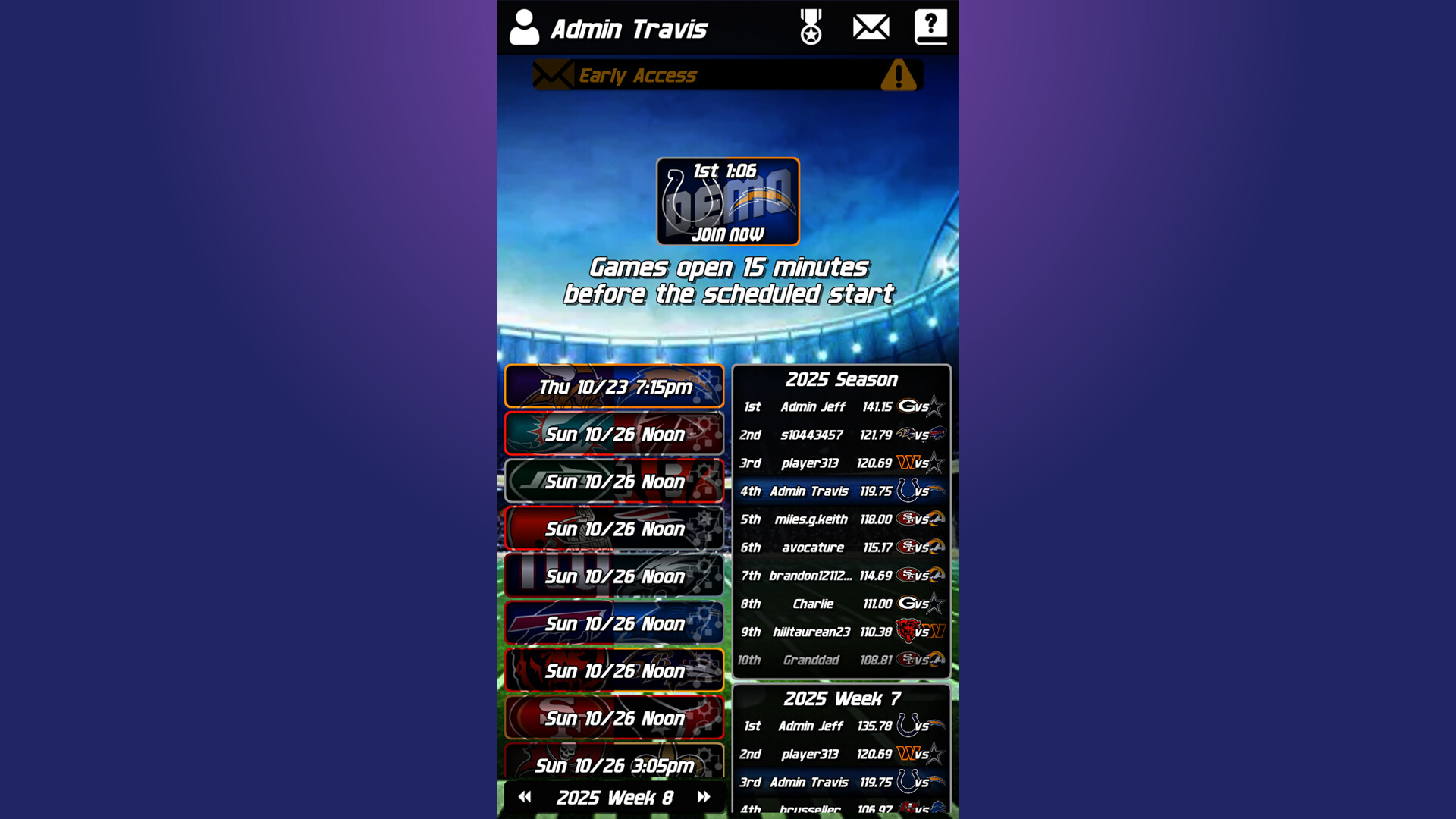 Fantasy Royale is built for maximum engagement, with real-time scoring that reflects every catch, tackle, and touchdown the moment it occurs. Challenge your friends or test your skills against the world on our global leaderboards. With deep player analytics at your fingertips, you have all the data you need to make informed, strategic decisions that can turn the tide of any game. This is more than fantasy sports—it's your chance to manage your team and prove your strategic genius with every snap.