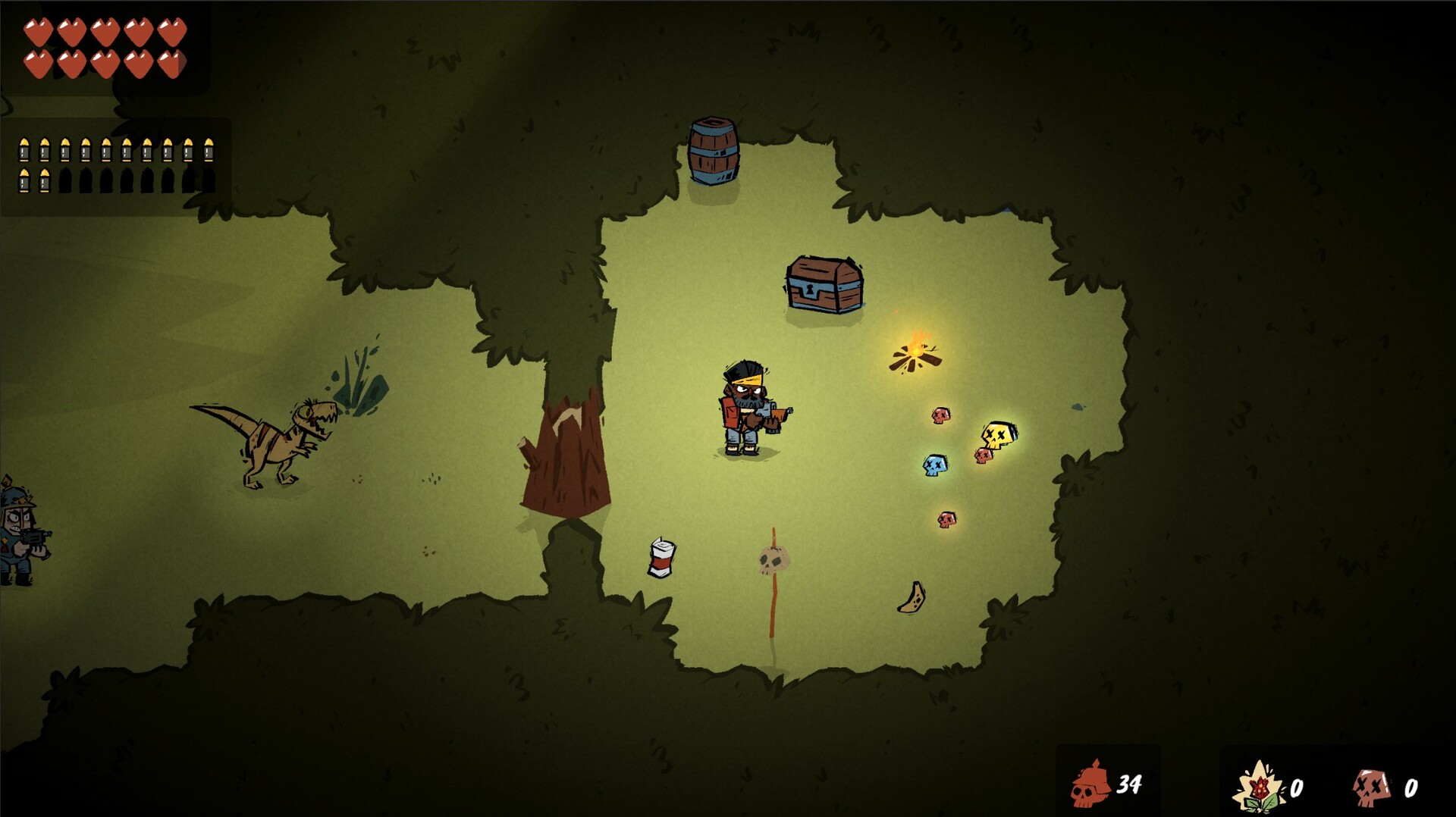Dive into an action-packed, hand-drawn top-down shooter. Explore a dark jungle and fight the lurking soldiers of a totalitarian regime and, of course: dinos! Numerous weapons, grenades, and items make mercenary life a bit easier! 90s Retro Fun garantiert.