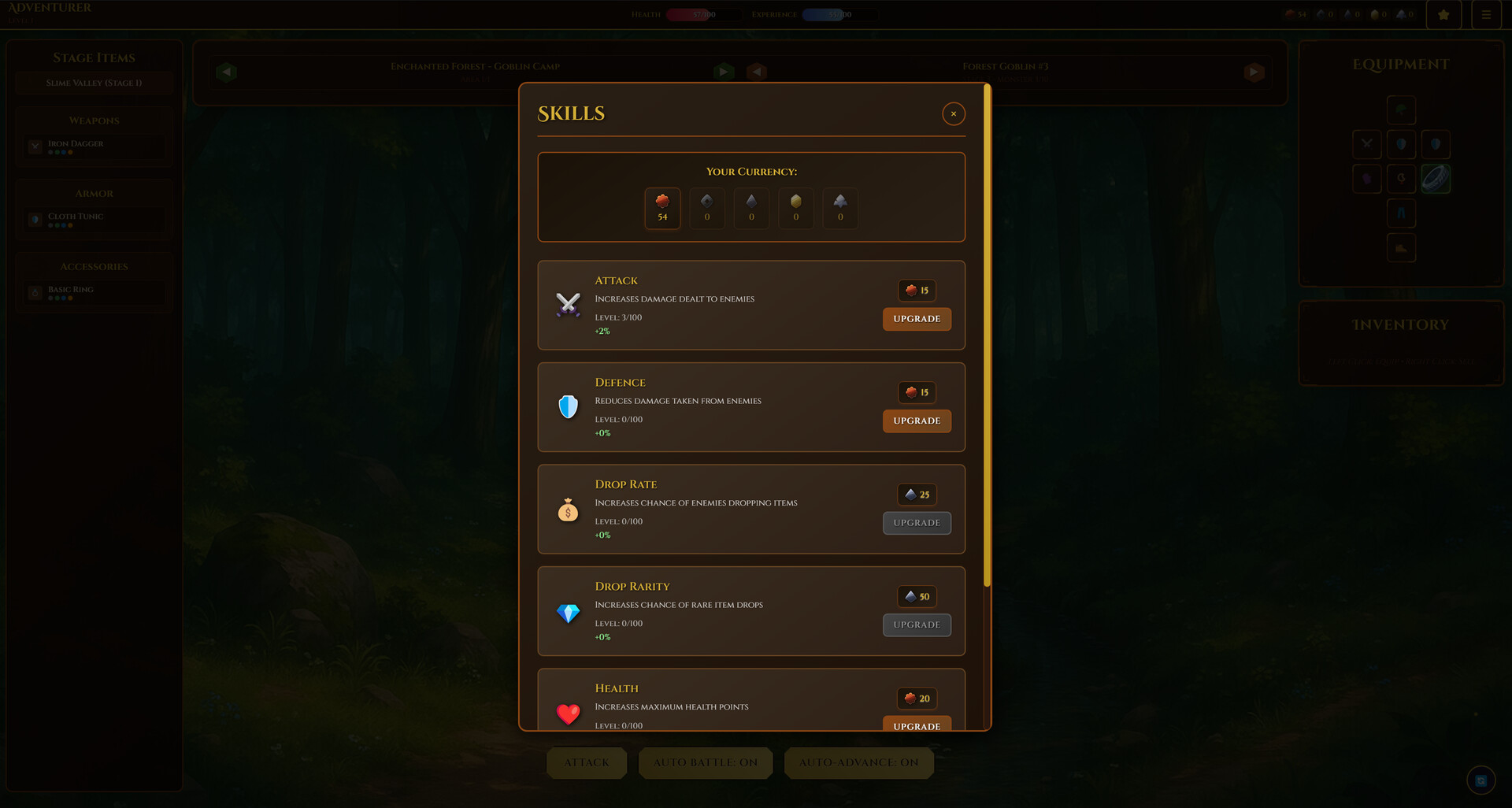 Adventarum is a fantasy idle battler where you fight monsters, earn loot, and rise through the Adventurer’s Guild. Upgrade skills, craft gear, and unlock epic quests as you grow from lone adventurer to guild master.