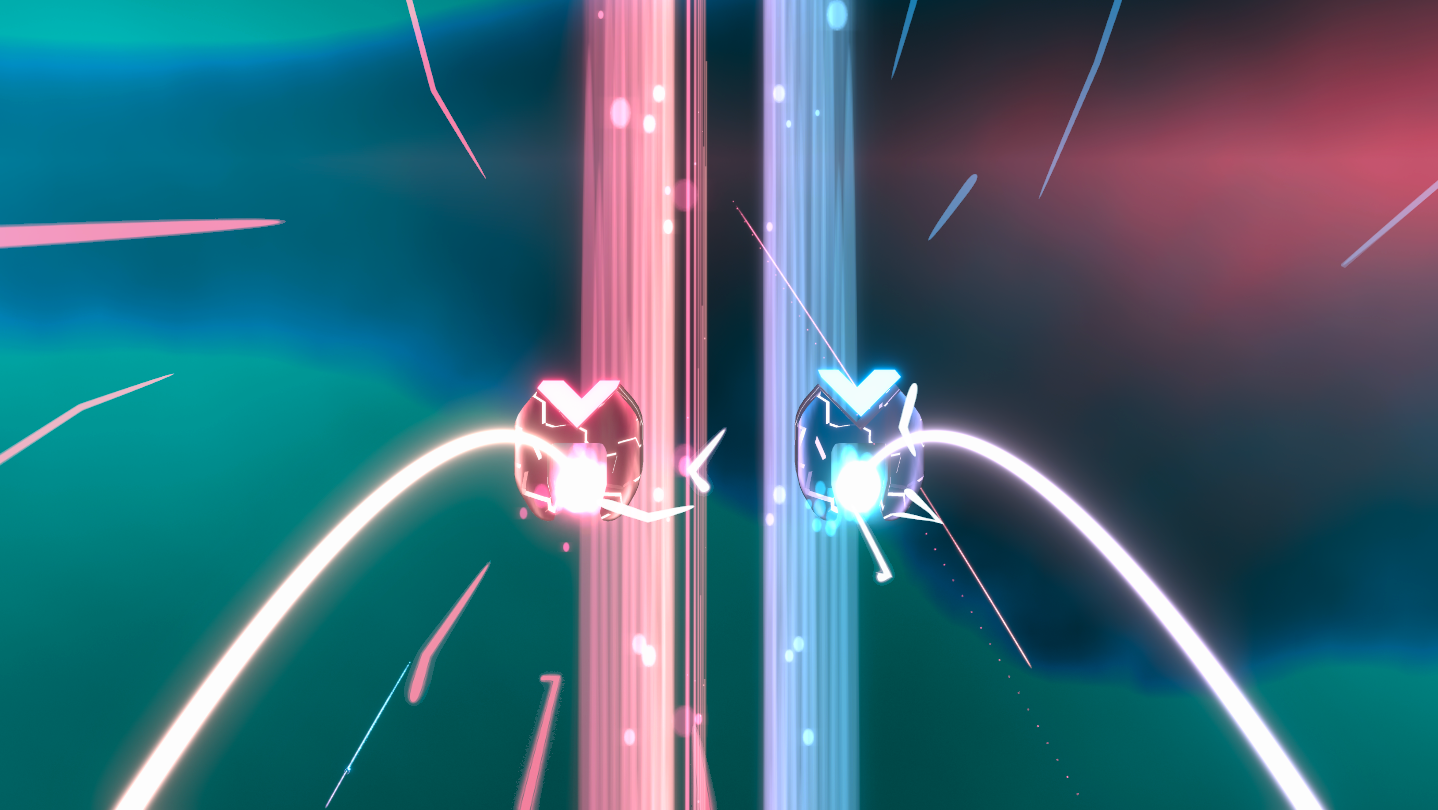In Dezzibels, the notes exhibit their own defiant behavior. They don't just passively travel towards you, but rather actively express the music’s vibe through coordinated movement. We use these visual gimmicks to deceive your eyes, creating difficulty by challenging your ability to interpret the flow rather than overwhelming note density. Let the entire stage react to the rhythm!