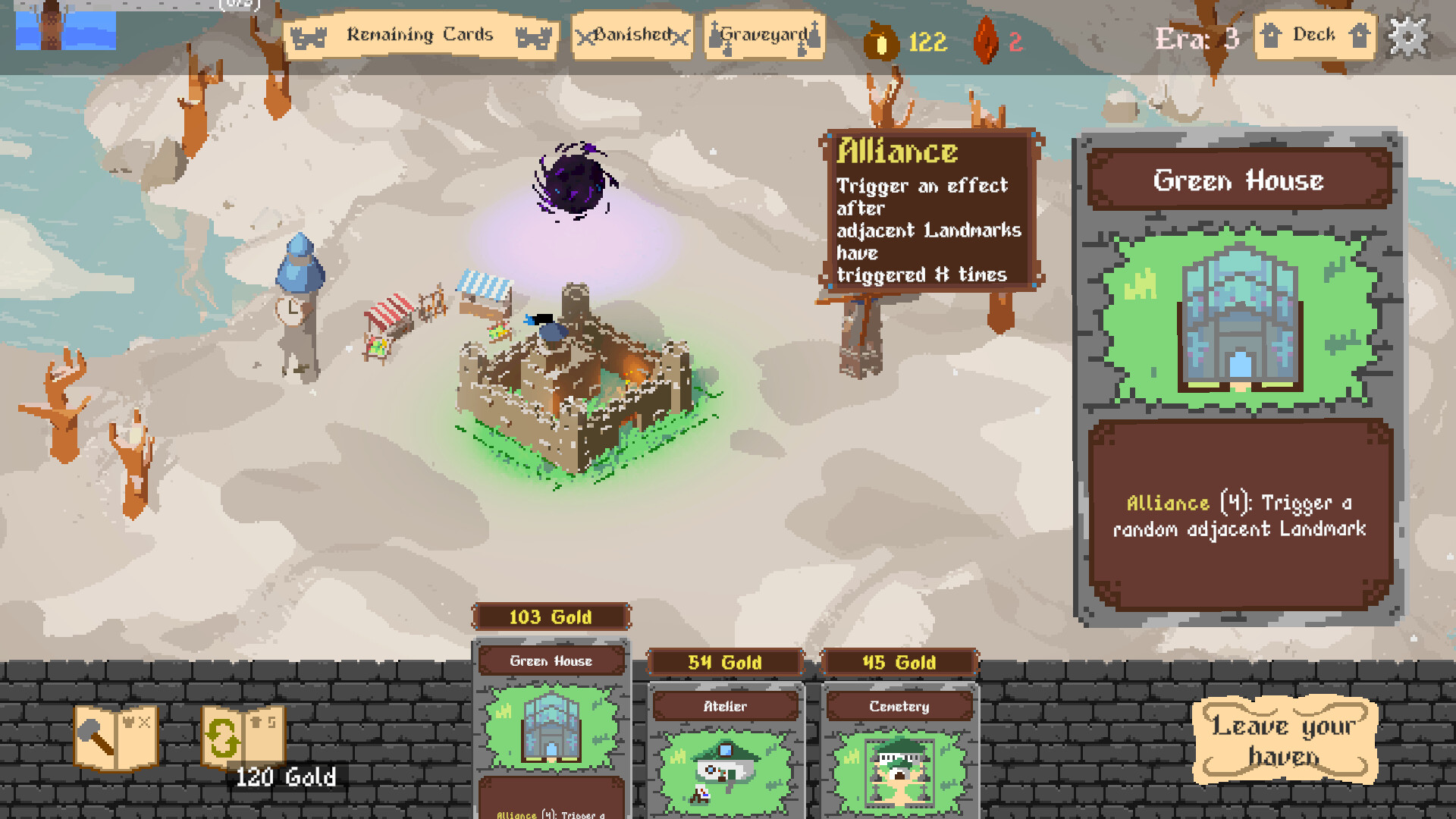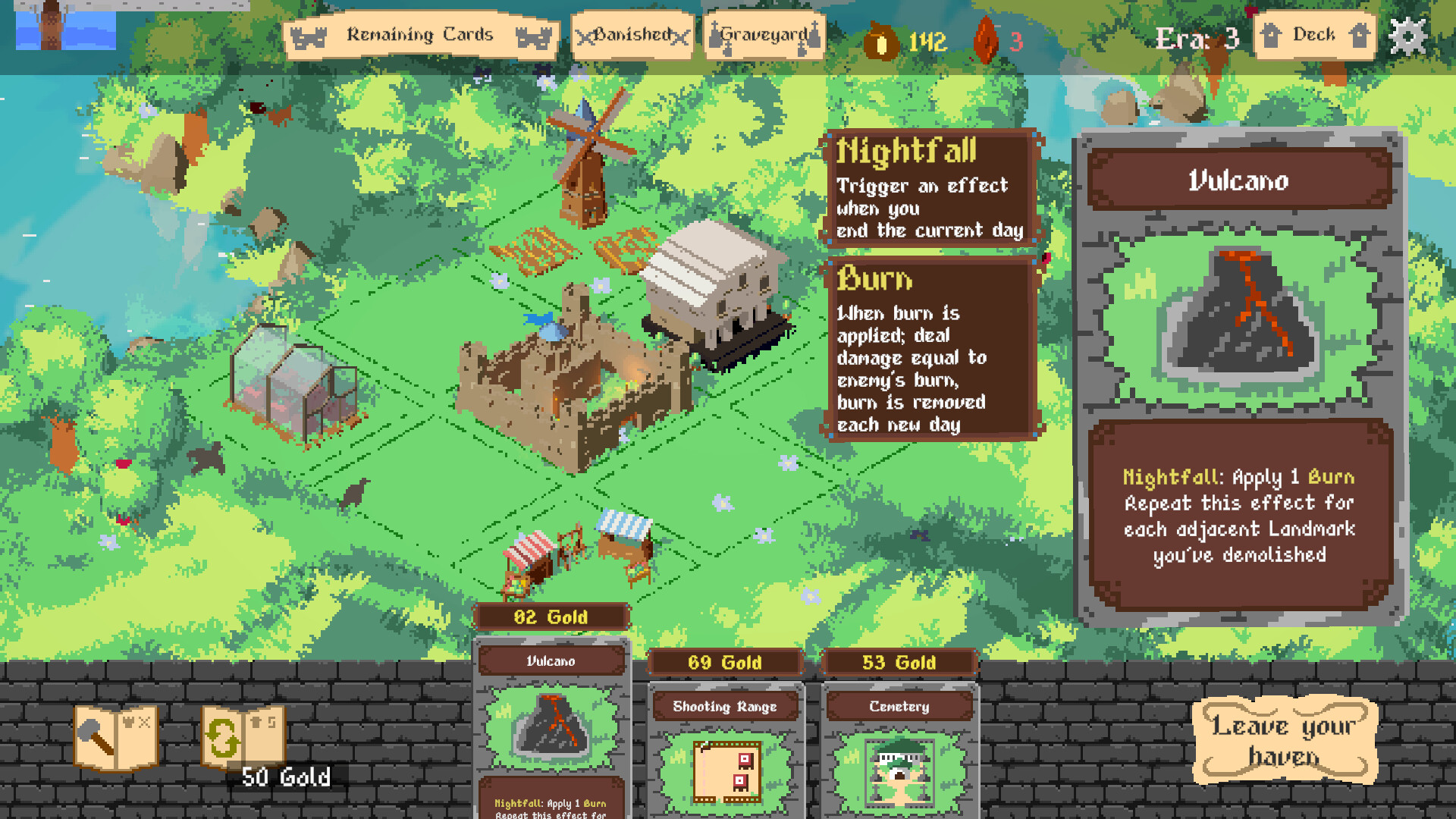 Build your deck, expand your kingdom, and defend your Haven! Recruit Citizens, construct landmarks, and build powerful combos in this roguelike deckbuilder where each season brings new rewards, new threats, and new choices.
