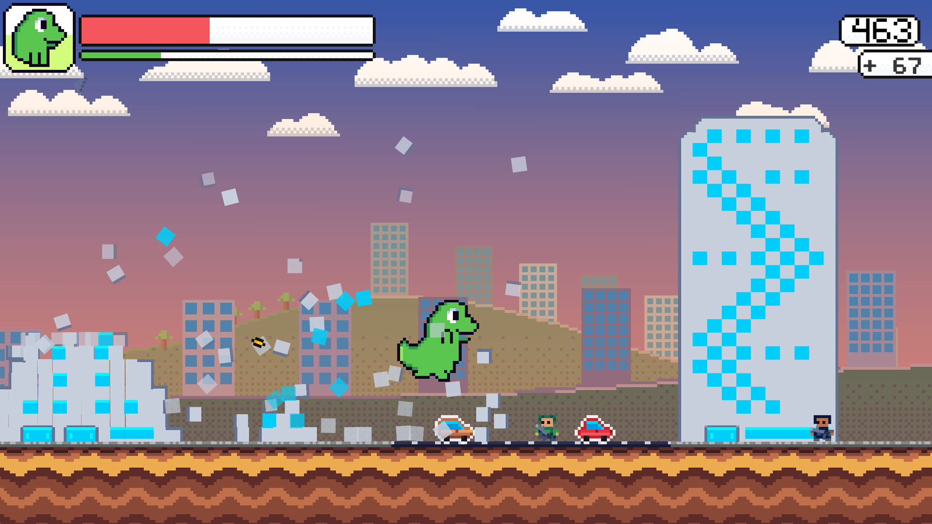 Dash through an island of unique levels, packed with challenges and unexpected encounters. Stay relentless, hunt down the mad scientist, and leave a fast-moving trail of destruction in your wake!