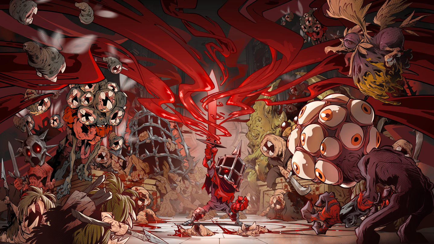 You play as The Warlock, bound by contract to the banished god of blood, the Patron, to kill monstrous foes and collect their godly blood, ichor. In return for your service, you grow more powerful with cursed upgrades that both power you up and make your run more difficult.