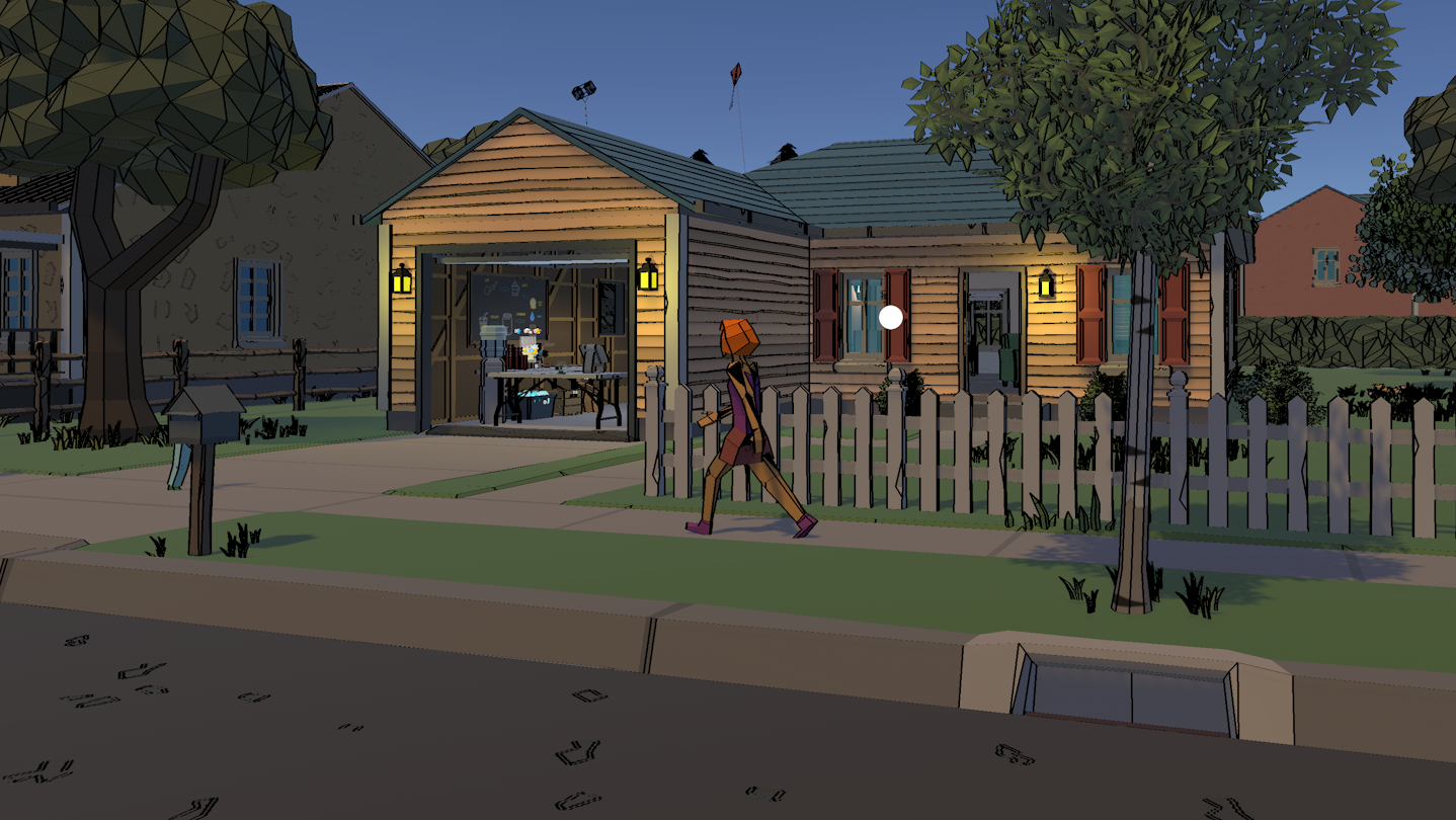 Explore a cozy suburban neighborhood with a couple interactable points of interest