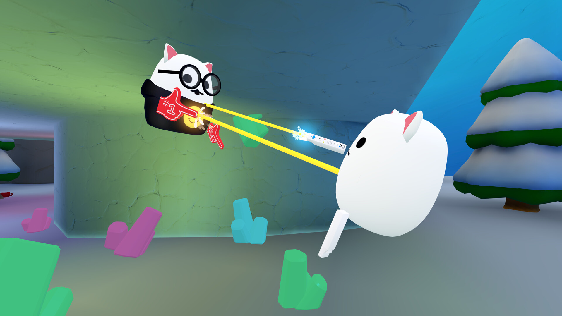 Catto Pew Pew! is a physics-based shooter game where competitive gameplay, proximity chat, and pure chaos collide. Shoot your opponents into the sky and claim your victory!