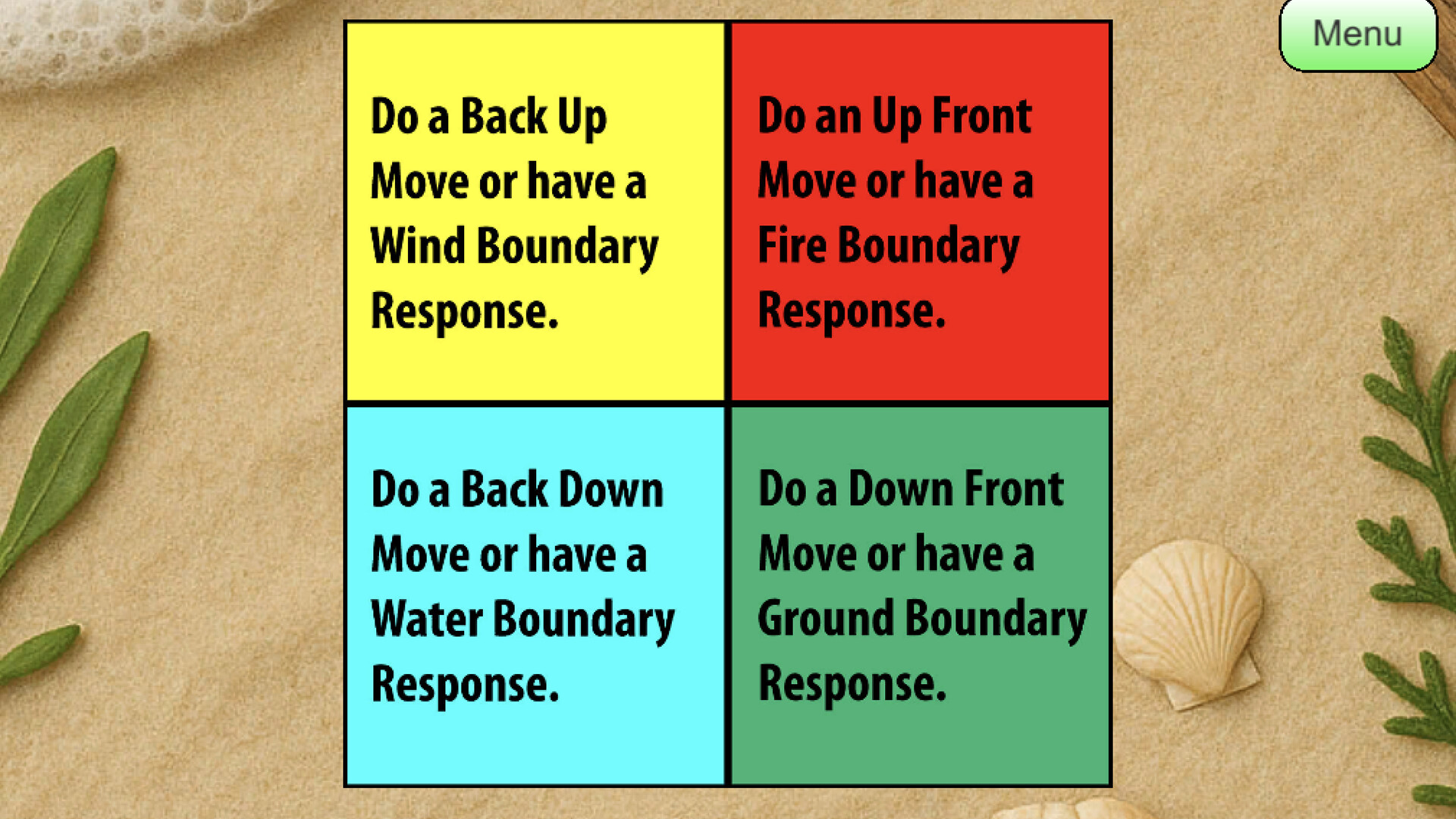 This app helps people do a simplified form of Tai Chi led by the computer. It requires no training or previous experience; you just follow along. There are 9 postures, which can be done sitting (just using the arms) or standing. If you are standing, you can make it more like real tai chi by doing the stepping correctly, which is explained by a video. This app is called Tai Chi Fusion because, in addition to the tai chi like movements, there are energies of Water, Wind, Fire, and Ground, which are stress responses and come from Miyamoto Musahsi's famous Book of Five Rings on Japanese Swordsmanship. There is also a 4 minute qigong routine and a game. Enjoy!