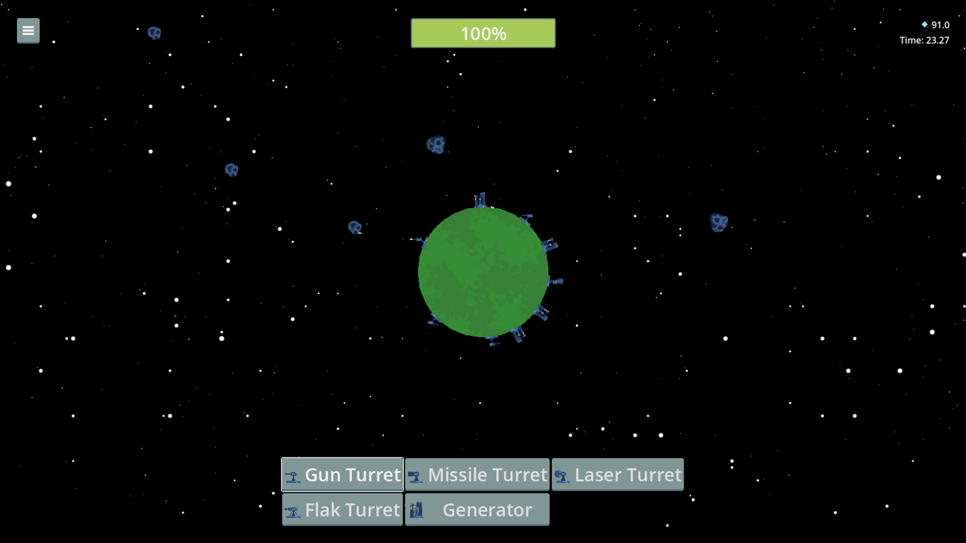 Defend your planet from relentless stream of incoming asteroids in this fast-paced 2D tower defence game. Strategically place defensive buildings and upgrade your arsenal to protect your world from destruction!