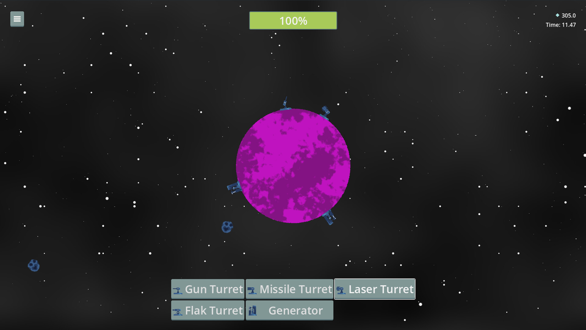 Defend your planet from relentless stream of incoming asteroids in this fast-paced 2D tower defence game. Strategically place defensive buildings and upgrade your arsenal to protect your world from destruction!