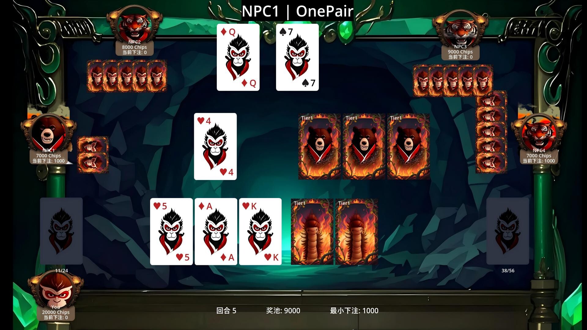 Myth Monkey Card is a single-player card game that masterfully combines Texas Hold'em poker hand-building with Roguelike tower-climbing strategy. You play as the retired Great Sage, Sun Wukong, who, seeking new challenges, reunites with old friends and battles the heavens once more through a strategic card game.