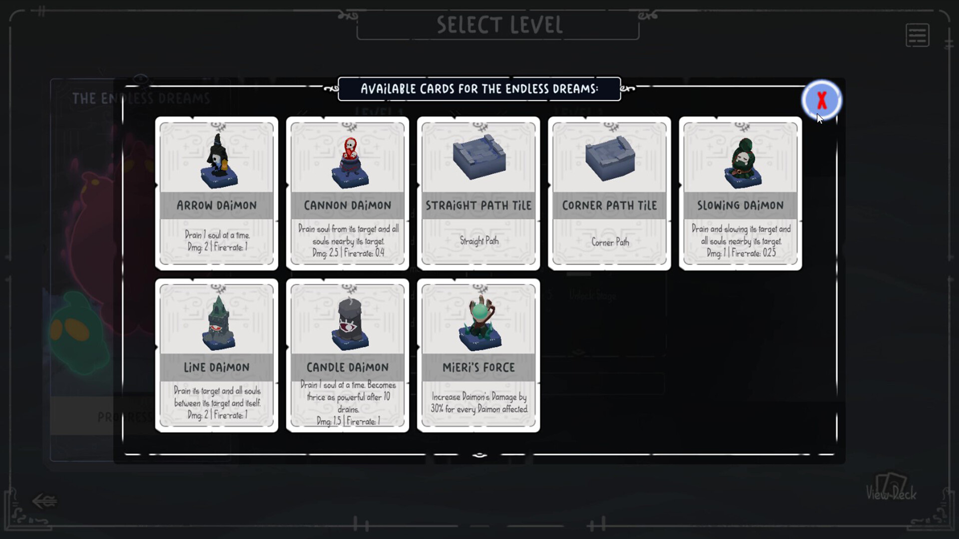 • Blessings and Card Shop: Acquire blessings that provide permanent effects for that playthrough and manage your gold to purchase new towers in the shop.