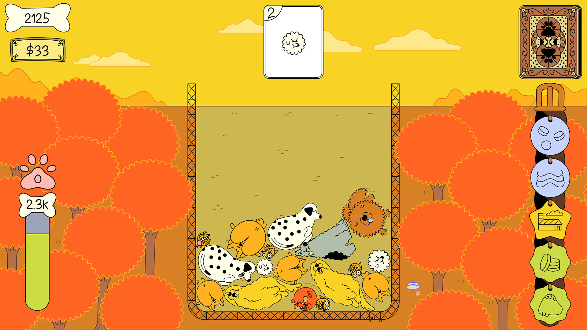 When two of the same dog touch, BAM! You get a BIGGER dog. With careful placement, some clever purchases, and a can-do attitude, you can merge pups strategically and achieve the biggest dogs imaginable.