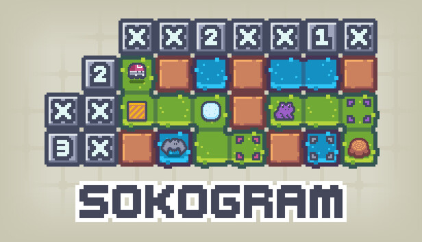 Sokogram merges Nonogram logic grids with Sokoban box-pushing puzzles. Each level blends both systems into one unified challenge with handcrafted designs that reward deduction over guessing.