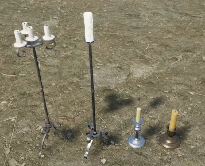 ·       An atmospheric set of 4 illuminations, including 2 intimate table candlesticks and 2 imposing floor stands to set the mood: