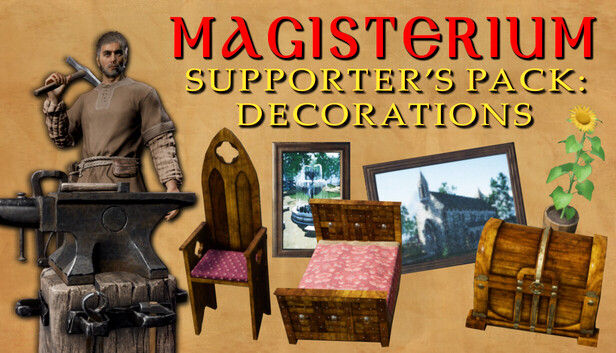 As a heartfelt thank you to our dedicated community, we present the Supporter’s Pack: Decorations. This DLC is crafted for those who wish to journey the extra mile and support the ongoing development of Magisterium: Fantasy Craft. In return, we offer a trove of exquisite decorative items to personalize your home and garden, adding a new layer of beauty and storytelling to your world. Your support helps us create, and for that, we are immensely grateful.