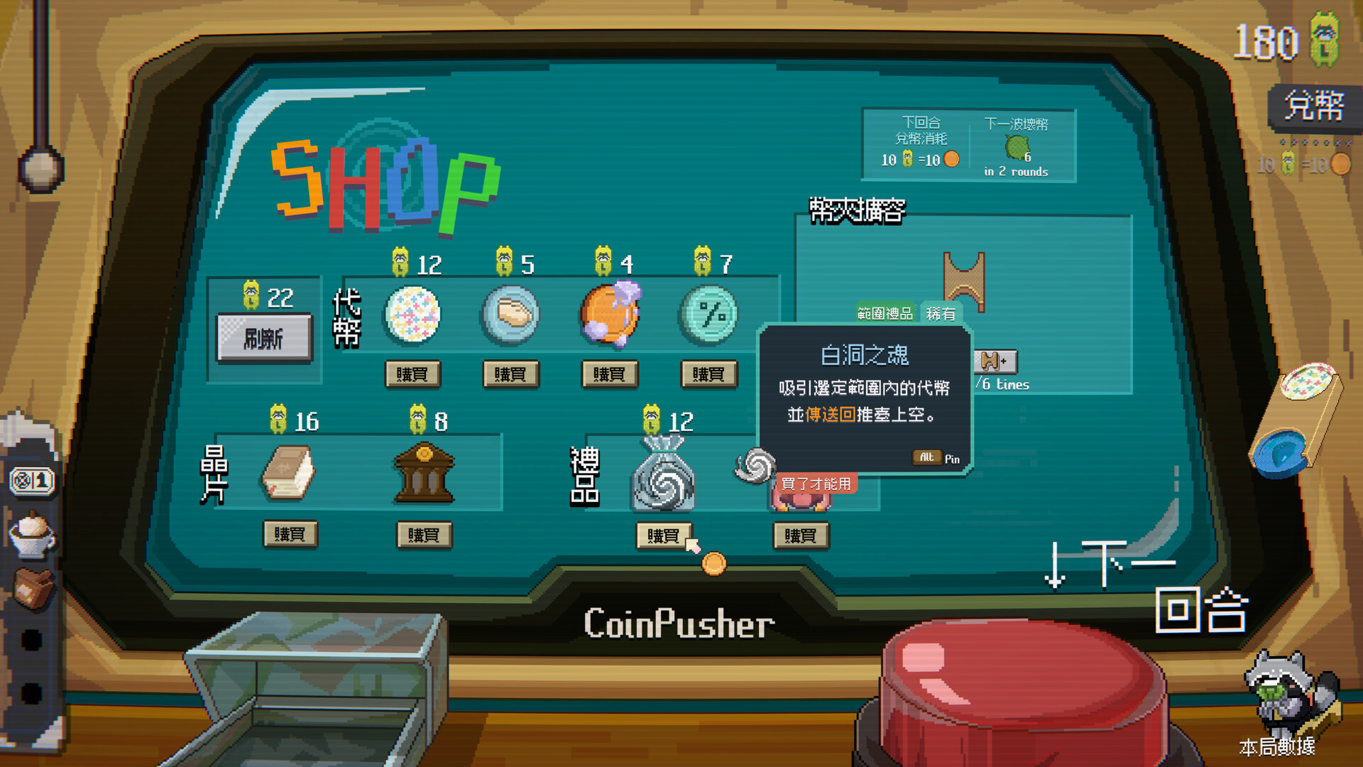 浣熊推币机 试玩版 把傳統街機推幣機的混亂樂趣,與 Roguelike 卡組構築的策略深度完美結合。組合各種特殊硬幣與強力道具,創造超乎想像的加乘效果。準備迎接一場永不停歇的多巴胺狂潮,體驗難以預測的推幣盛宴。